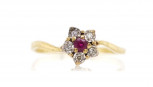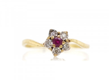 Lot Description:Ruby & diamond set 9ct yellow gold daisy ring