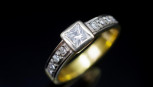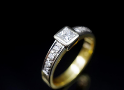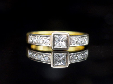 Lot Description:Princess cut diamond & 18ct yellow gold ring