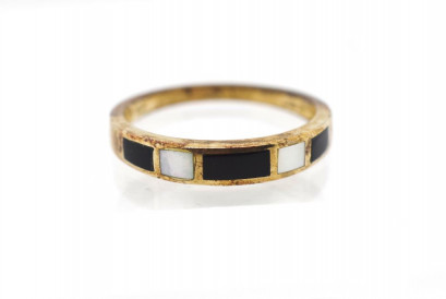 Lot Description:MOP & onyx set 9ct yellow gold ring