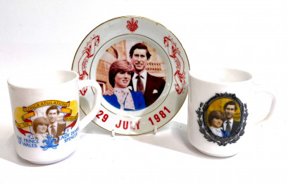 Lot Description:Two Prince of Wales & Lady Diana Commemorative Marriage Cups & a Matching Plate, 29th July 1981