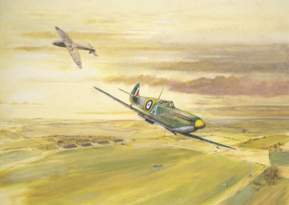 Notes:Returning Spitfires of RAF 19 Squadron over Duxford during the Battle of Britain.
