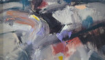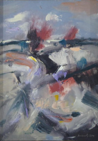 Gully Walk, 2014, signed lower right, 36cm x 36cm, oil on board, along with a similar abstract piece, artist unknown, 39cm x 29cm -