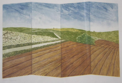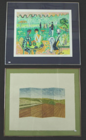 "Road - Oxfordshire", hand-colored etching on paper, signed to lower right, numbered 30/90, 30cm x 44cm and Jean Claude Picot print, 46cm x 54cm -