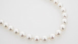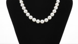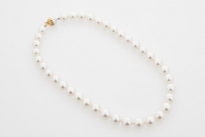 thirty seven round white pearls slightly graduating from 10mm to 11mm set with an 18ct yellow and white gold ball clasp