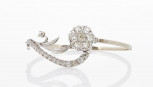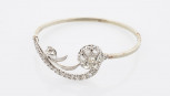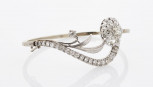 oval design with a large cluster of old mine cut diamonds with a curved leaf motif claw set with old mine cut diamonds