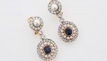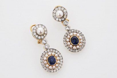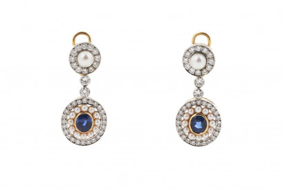Lot Description:Sapphire Pearl and Diamond Cluster Earrings