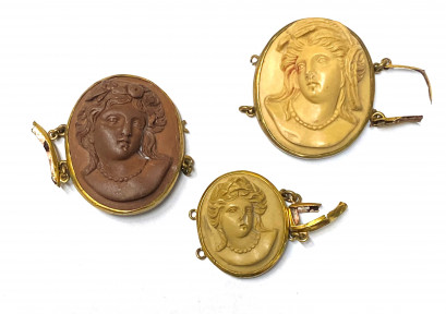 Lot Description:Three Gilt Framed Lava Cameo, Portraits of Young Ladies