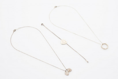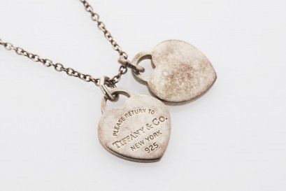 two necklaces, one set with round return to Tiffanys pendant second one set with two small heart pendants, together with a heart return to Tiffanys bracelet, all signed and stamped 925