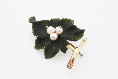 Lot Description:Pearl and Nephrite Brooch