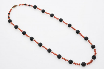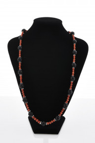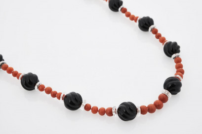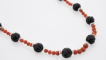 Lot Description:Coral and Black Onyx Beaded Necklace