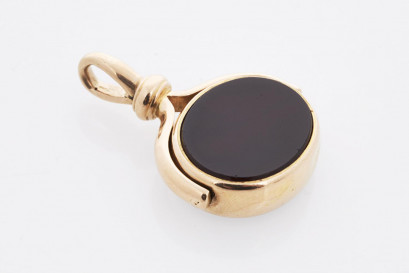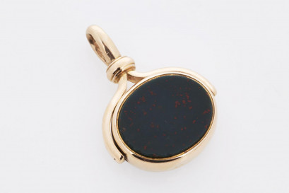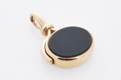 15ct yellow gold spinning centre bezel set with an oval cut Bloodstone and oval cut Carnelian, stamped 15.625