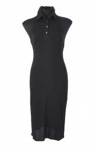 including an Armani silk tank top with spaghetti strap, enhanced by tonal ripple-effect details all-over to front, zip closure to back; another Wolford black dress with bow-tie back details; together with a Wolford halter dress in metallic material