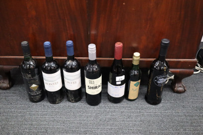 The Rothbury Estate 1995 Hunter Valley cabernet merlot, Big and Bold 2015 shiraz, two Montes merlot 2003 made in Chile, and one other