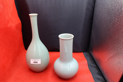 Lot #459 - Korean two celadon green pottery vases signed on bases