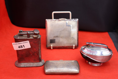 Art Deco plated cigarette case, Art Deco table cigarette lighter and Ronson Lotus cigarette lighter