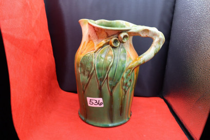 Lot #536 - Remued green and orange jug with gum leaves and two gumnuts
