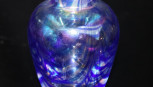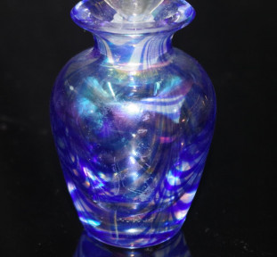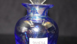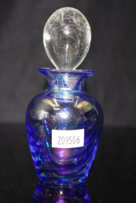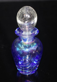blue on clear with crackly stopper, height approx 11cm, unsigned -