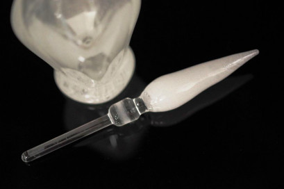 clear and frosted white bottle, marked on base TT, height approx 12cm -