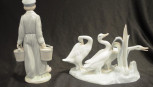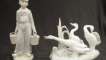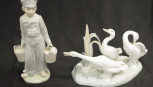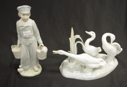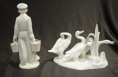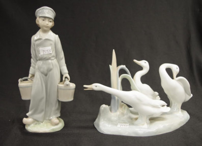 comprising a young Dutch boy with pails, #4811, height 22cm approx, together with a three ducks #4549, width 24cm approx -