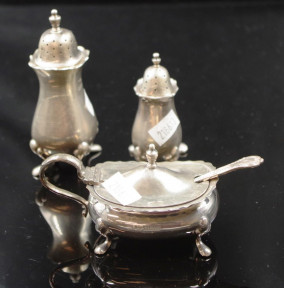Lot Description:Three piece Sterling silver cruet set
