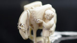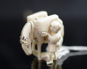 Lot #1512 - Japanese carved ivory man & horse netsuke