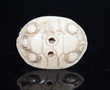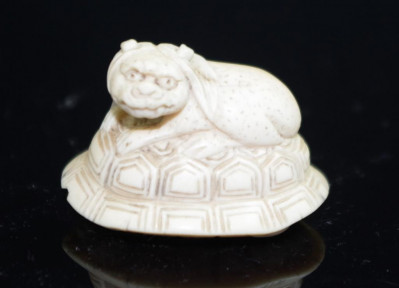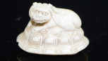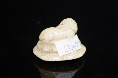 figure of a resting dog on a tortoise carapace, signed to base, (width 5cm approx).