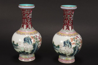 Lot #860 - Beautiful Pair of Petit Chinese Porcelain Vases
