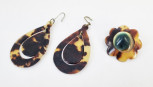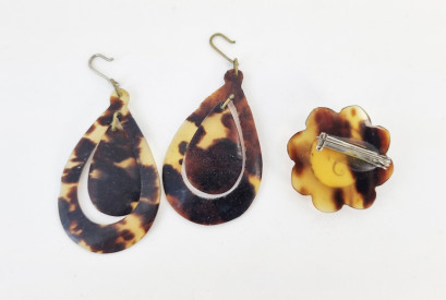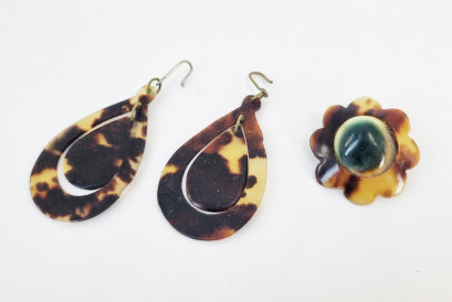 Lot Description:A Vintage Tortoise Shell And Operculum 'Cat's Eye' Brooch And A Vintage Pair of Tortoise Shell Drop Earrings