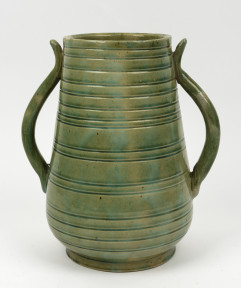 Lot #40 - BENNETTS POTTERY green glazed vase with two handles