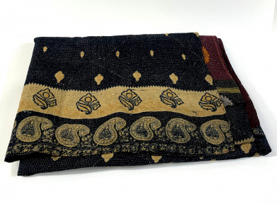 Lot Description:A Vintage Indian Navy & Mauve Kantha Throw Depicting Paisley & Floral Embroidered Motifs