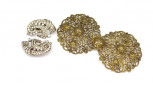early 20th C. marked Czechoslavkia Renaissance grill metal pair. Old cut paste & silver pair is marked Sterling England 41x30mm. length 12.5cm. * All approx -