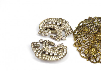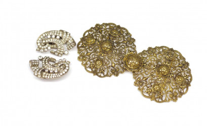 Lot #352 - Antique paste & silver gilt dress clips & another
