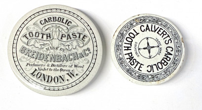 Lot Description:Two Carbolic Tooth Paste Pot Lids, Calvert's & Breidenbach & Co, London