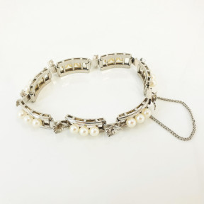 Lot Description:A Vintage Japanese Silver and Akoya Pearl Bracelet