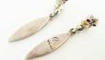 Lot Description:A Pair of Mexican Taxco Sterling Silver and Enamel Drop Earrings and A Sterling Silver and Cultured Pearl Spray Brooch