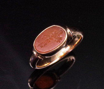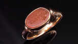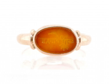 Lot Description:Arabic intaglio set 9ct rose gold ring