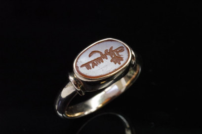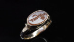 Lot #396 - Arabic intaglio set 9ct rose gold ring