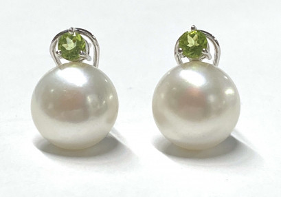 two freshwater pearls, 12.5mm, two round peridot, 0.20ct each