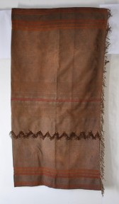 Double Ikat striped decoration with twilled vertical fringe & beaded fringe ankle line. Provenance, heirloom Augustine Umbu Windi family. Some storage discolouration.