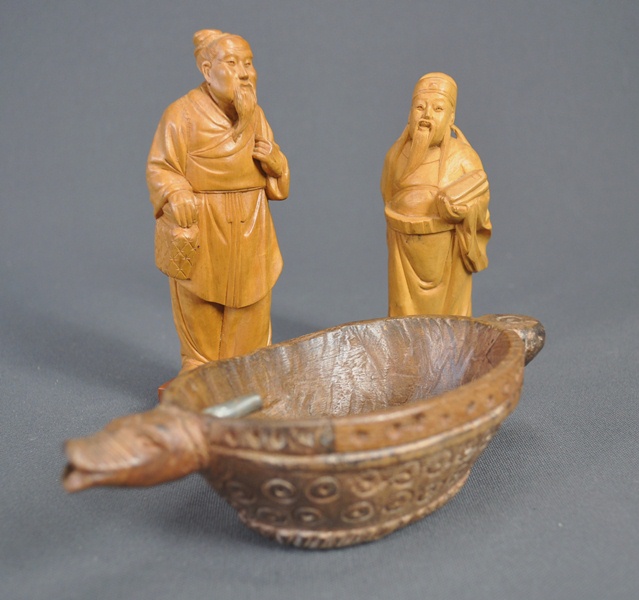 & Carved Animal Spout Opium Bowl -