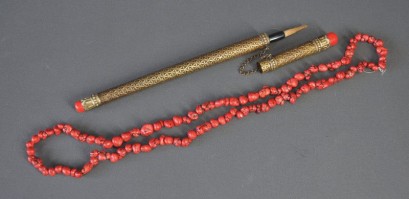 Lot Description:Sino/Tibetan Silver & Brass Brush Holder & Brush