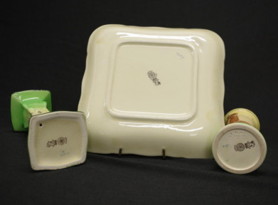 including vase approx 10.5cm height, plate and candlestick -