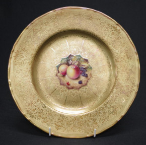 hand painted & signed fruit decoration to centre, of all-over gilt decorated display plate, marked to base, (diameter 27.5cm approx). -