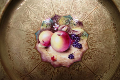 Lot Description:Royal Worcester gilt & fruit cabinet plate NUTT