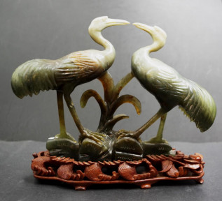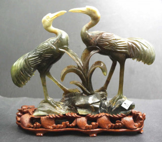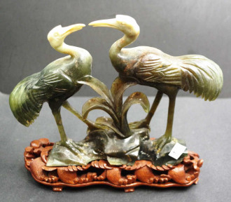 Lot Description:Chinese carved hard stone figure of two storks
