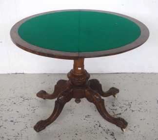 with swivel top opening to circular playing surface. Approximate dimensions: 92cm wide 46cm deep (unopened) 92cm deep (opened) and 70cm high -