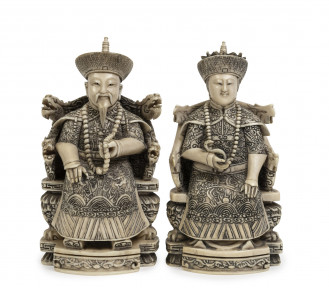Lot Description:A pair of Chinese carved ivory ancestor statues, 19th/20th century