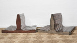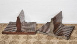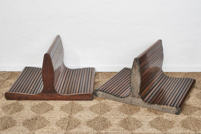 Victorian Blackwood seat, with alternating light and dark slats, without legs, 2 of a set of 4 (2)