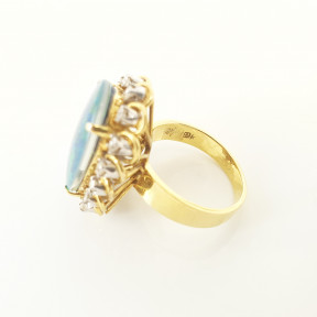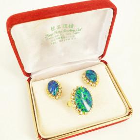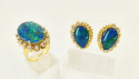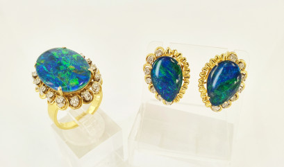together with A MATCHING PAIR OF SCREW BACK EARRINGS, ring with 16 single cut diamonds, size M, earrings each with seven single cut diamonds, marked 18k gold but tests approx. 15ct. Estimated total weight of diamonds 30=0.46ct. Total weight 16.18g. -
