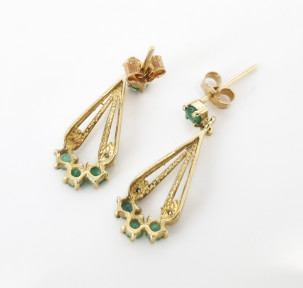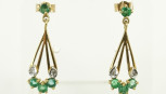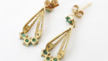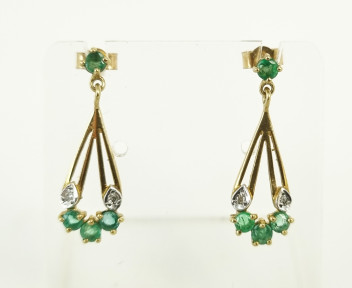 Lot Description:A Pair of Vintage 9ct Gold Emerald and Diamond Drop Earrings